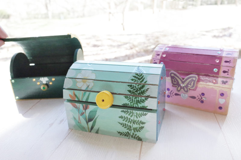 かわいいサイズの宝箱♪組み立てて色を塗り、ラインストーンやスパンコール、ビーズなどでデコレーションして完成。とっておきの宝物を入れよう!(サイズ:約12cm×8cm×高さ8cm)