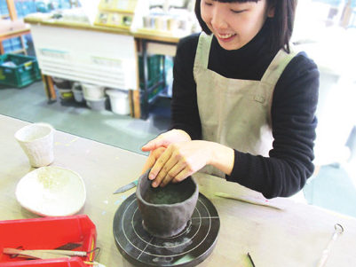 ■『陶芸』:粘土をこねてカップやお茶碗、オブジェなど、好きな形に作ることができる【手びねり】や、白い陶器の器にシールや絵の具で模様を描く【絵付け】。どちらも本格的な陶芸作品が指導を受けながら簡単に作れます。陶器のアクセサリーを作るお手軽メニューもあります♪※(焼成するので完成は約2ヶ月後)作った作品は取りにくるか、郵送(着払い)にて発送できます😳