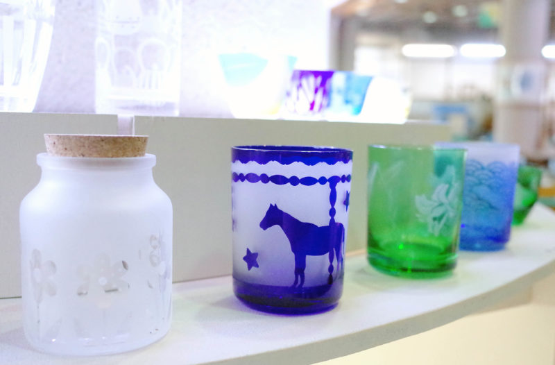 ■『ガラス(サンドブラスト)』:砂を吹き付けてガラスの表面に模様をつけるサンドブラスト。常時30種類以上のガラスの器やグラスを用意。工房にあるシールを貼たり、デザインシートを使ったり、専用のお絵描きペンで自分の描いたものがそのまま模様になったりと、様々な作り方があります😳