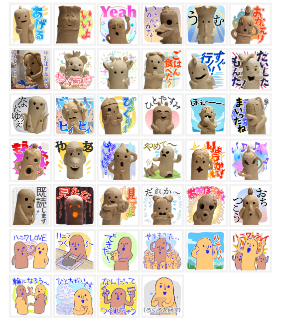 今年の土の工房企画「第6回埴輪コンテスト」にご応募いただいたお客様の作品をスタンプにしました。